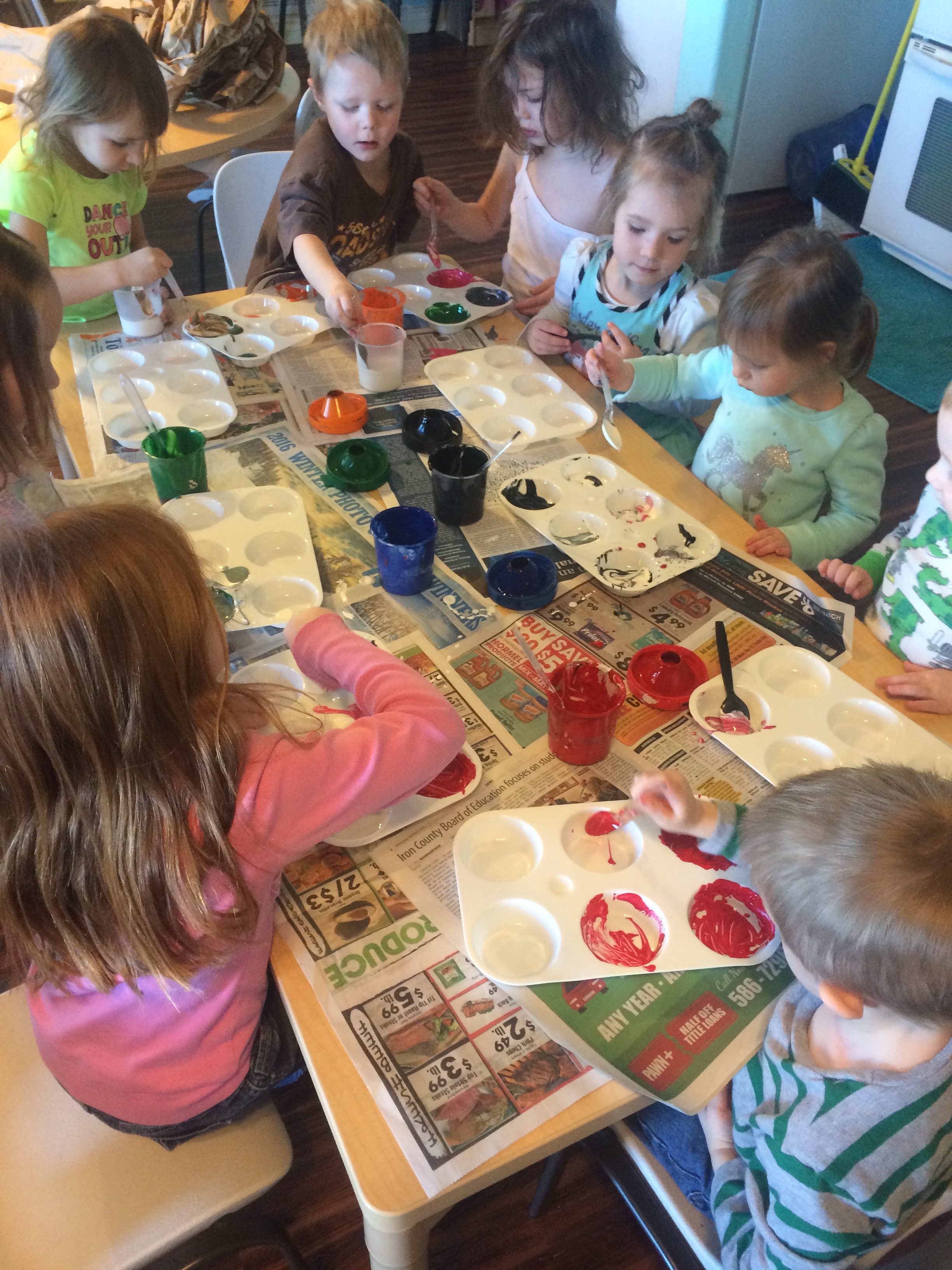 Make sure you have plenty of white paint out! It really adds to the variety of colors they can mix. Black paint is also fun and adds another element to the mixing.